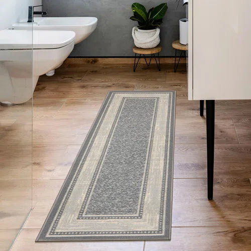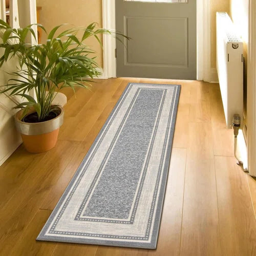 Ottohome Non-Slip Bordered Area Rug For Living Room, Hallway, Entryway Rug, Gray